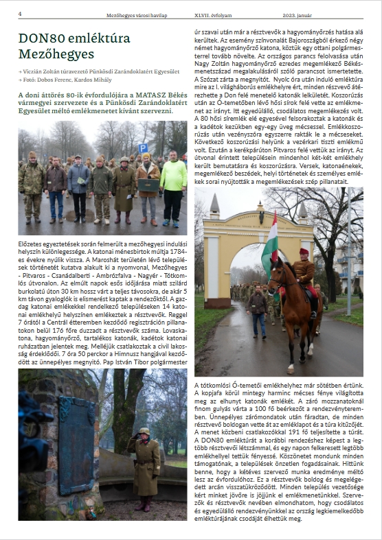 Mezőhegyes havilap cikke: Don 80 emléktúra Mezőhegyes